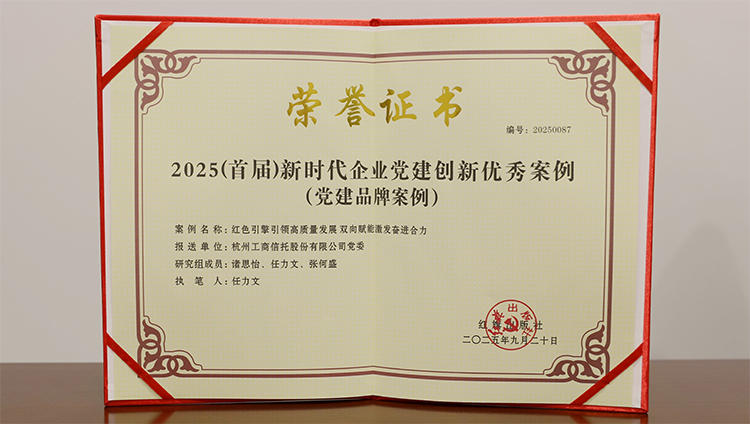 9月20日,由紅旗出版社主辦的2025(首屆)新時(shí)代企業(yè)黨建經(jīng)驗(yàn)交流會(huì)暨企業(yè)黨建創(chuàng)新優(yōu)秀案例發(fā)布儀式在北京舉行。會(huì)上發(fā)布了新時(shí)代企業(yè)黨建創(chuàng)新優(yōu)秀案例名單,杭州工商信托申報(bào)的“紅色引擎引領(lǐng)高質(zhì)量發(fā)展”黨建品牌案例《紅色引擎引領(lǐng)高質(zhì)量發(fā)展 雙向賦能激發(fā)奮進(jìn)合力》入選其中。