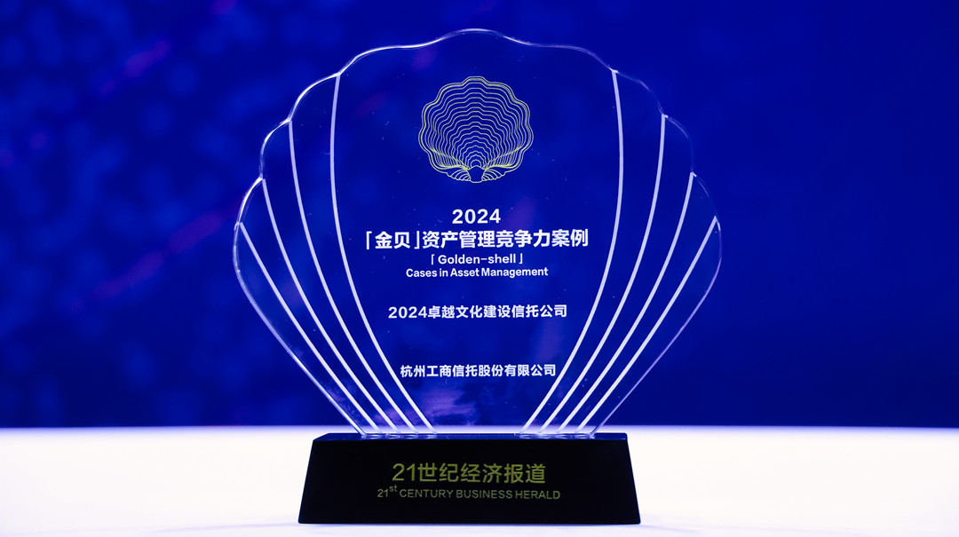 2024年8月17日,“2024資產(chǎn)管理年會(huì)暨十七屆21世紀(jì)『金貝』資產(chǎn)管理競爭力研究案例發(fā)布盛典”在上海舉辦。杭州工商信托榮獲“2024卓越文化建設(shè)信托公司”稱號(hào)。中國資產(chǎn)管理“金貝獎(jiǎng)”始評于2008年,由南方財(cái)經(jīng)全媒體集團(tuán)旗下《21世紀(jì)經(jīng)濟(jì)報(bào)道》發(fā)起主辦,致力于探索資管行業(yè)內(nèi)在發(fā)展及創(chuàng)新邏輯,發(fā)掘中國資產(chǎn)管理行業(yè)的成長法則與未來趨勢。